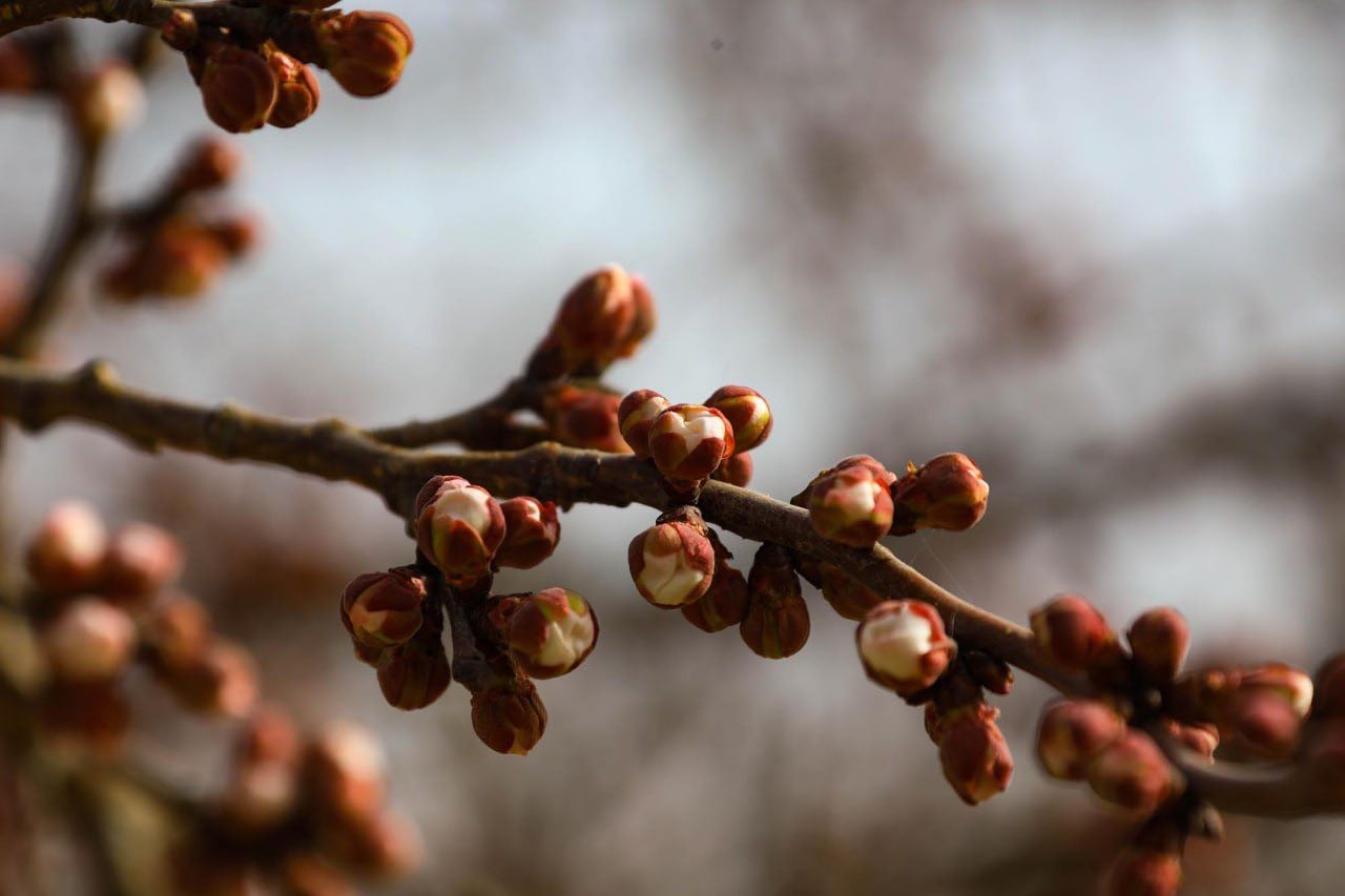 В уезде Токсун города Турфан начинается период пробуждения абрикосовых деревьев. В деревне Наньху (поселок Ся) на ветвях уже появились розово-белые бутоны, готовые к цветению.