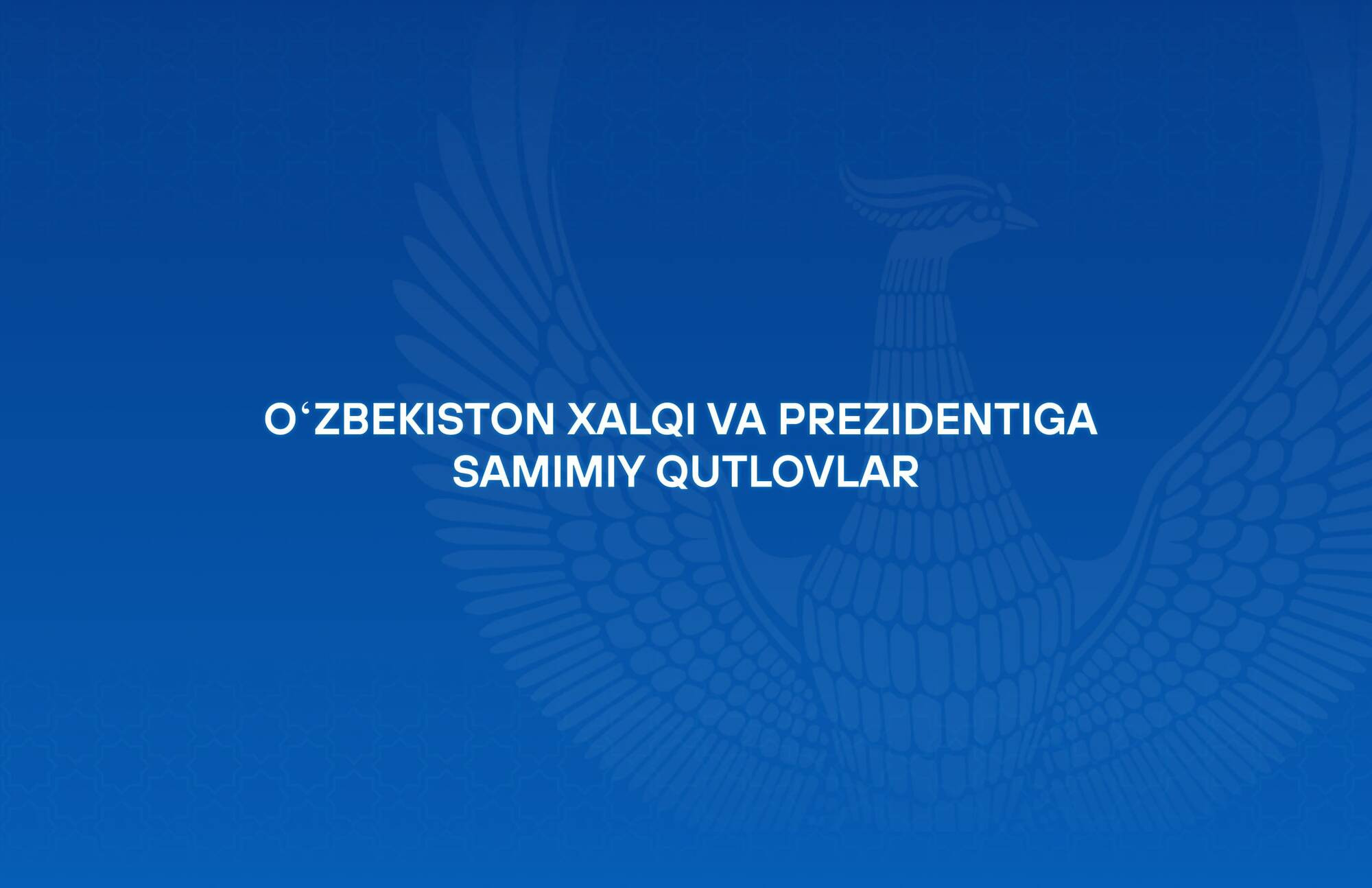 Bayram munosabati bilan Siz Janobi Oliylariga, oilangizga sogʻliq va baxt-saodat, qardosh Oʻzbekiston xalqiga omonlik va farovonlikka toʻla kelajak tilayman.