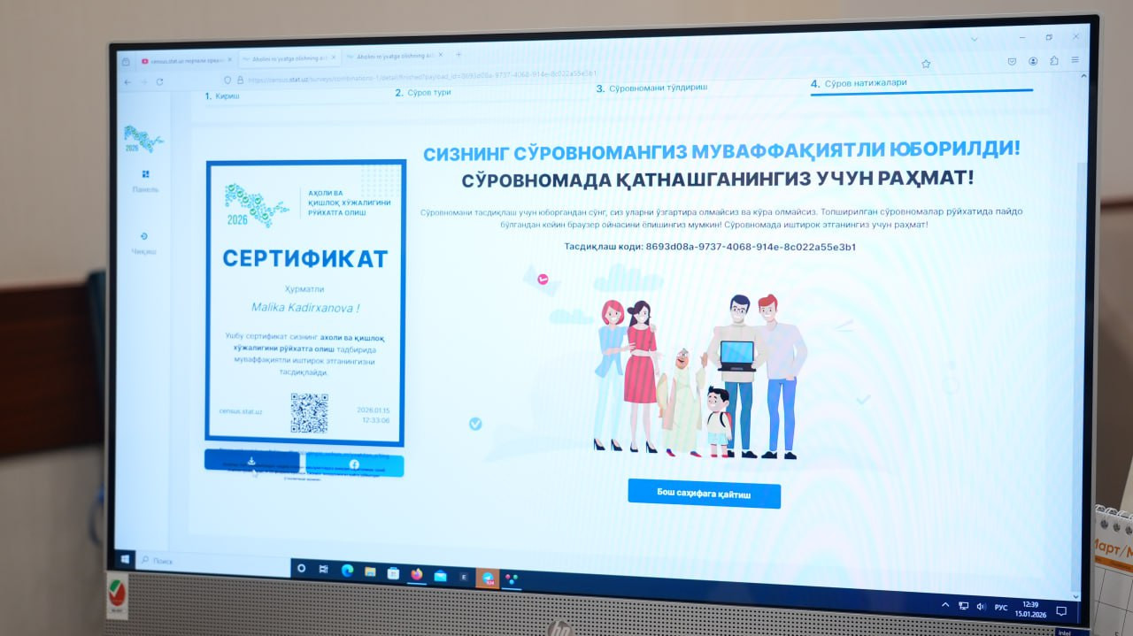 Senatorlar aholi va qishloq xo‘jaligini ro‘yxatga olish jarayonida faollik namoyon etmoqda